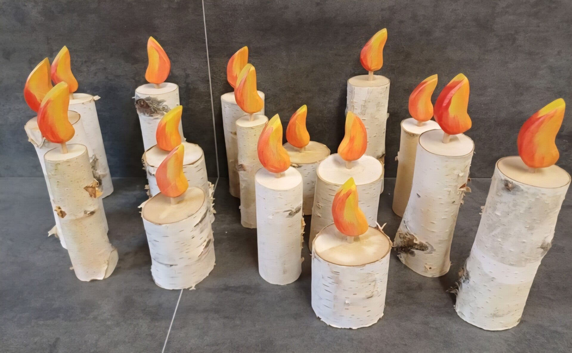 Birkenholz-Kerzen aus Holz – wie von der Natur gewachsen. Das Holz kann etwas heller oder dunkler ausfallen, was jede Kerze zu einem individuellen Einzelstück macht.