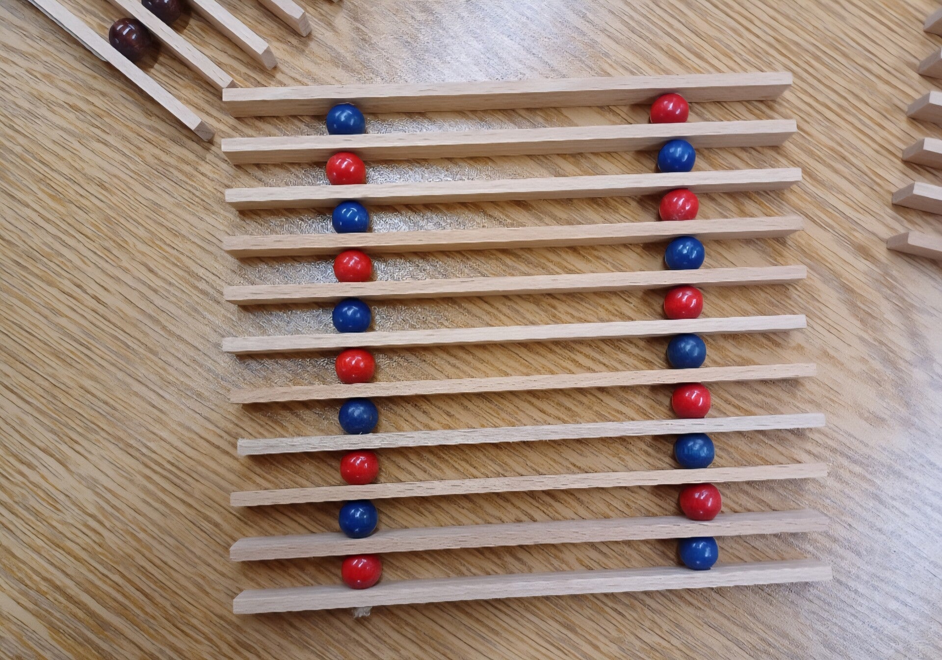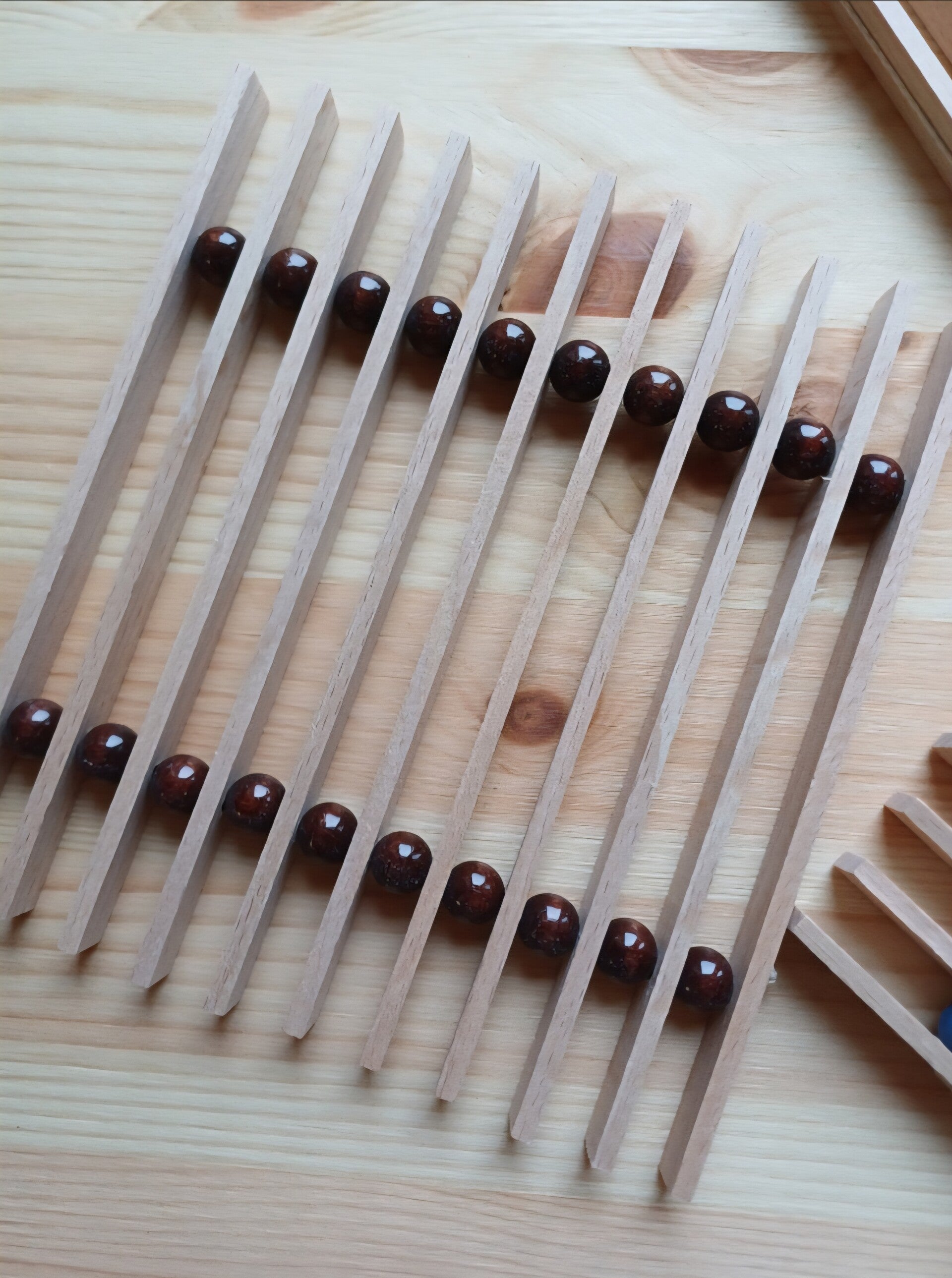 - Mit dekorativen farbigen Holzkugeln