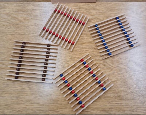 Flexibler Topfuntersetzer aus Buchenholz mit farbigen Holzkugeln